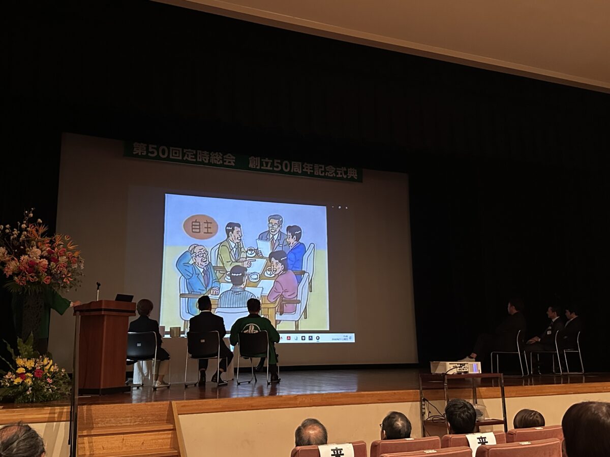 実行委員長の大原俊弘さんは、「今日は単なる記念ではなく、新たな50年の出発点。会員同士で学び合い、一歩でも前進できる会として発展させていきたい」と締めた。「この先の50年も地域経済を支える中小企業の連携強化と次世代育成に力を入れ100周年も盛大に祝っていこう」と呼びかけた。