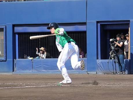 5日の試合は、対ライオンズ3連戦の初戦となり、ファイターズ・上原健太投手、ライオンズ・誠投手の両先発でスタート。1回裏、先頭打者 岡 大海選手が四球で出塁すると、ライオンズ守備の乱れをついての走者生還、1点の先制に成功、1-0とした。