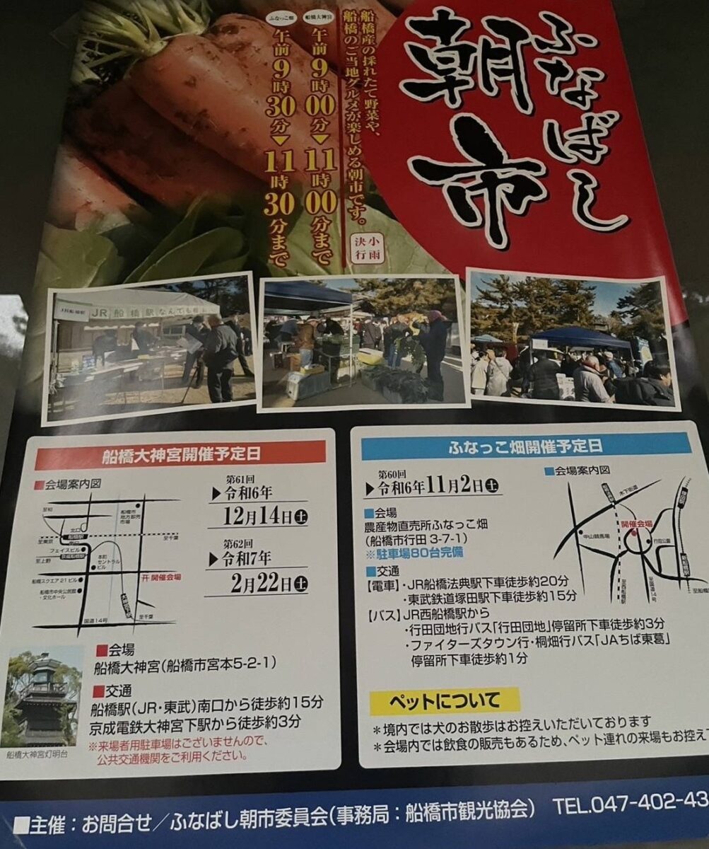 ふなばし朝市委員会(事務局:船橋市観光協会) TEL047-402-4321