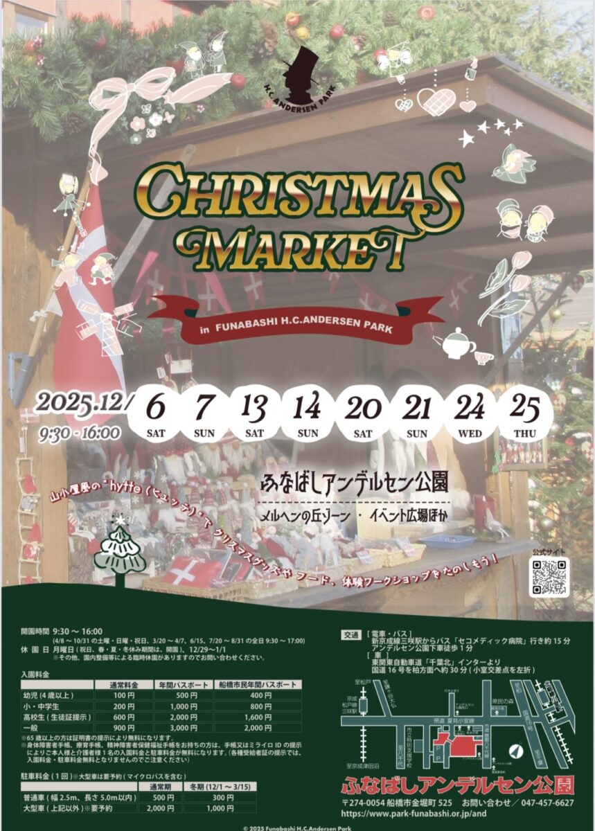 | 内容/詳細 | ふなばしアンデルセン公園で、山小屋風“hytte(ヒュッテ)”が並ぶクリスマスマーケットを開催。 |