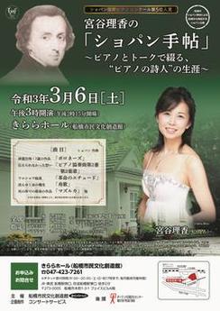 | 内容/詳細 | ショパン国際ピアノコンクール第5位入賞をした宮谷理香によるピアノコンサート。 出演者 曲目 |