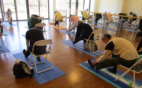椅子に座ってストレッチ&リラックス効果で心と体を温める。