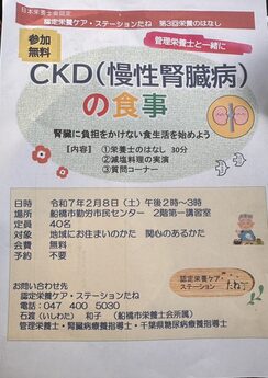 内容:①栄養士のはなし ②減塩料理の実演 ③質問コーナー 対象:地域在住の方、関心のある方 定員:40人 予約不要