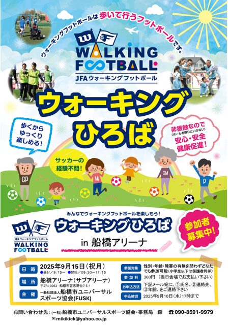 | 内容/詳細 | 「走らない、歩くサッカー」 |